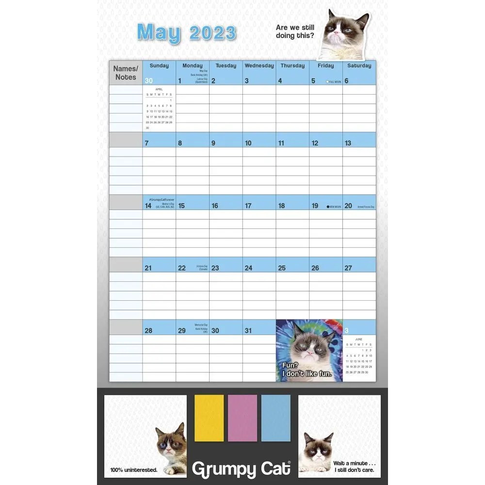 Web This 2023 Grumpy Cat Mini Wall Calendar Features Monthly Pages For January To December 2023, As Well As The.