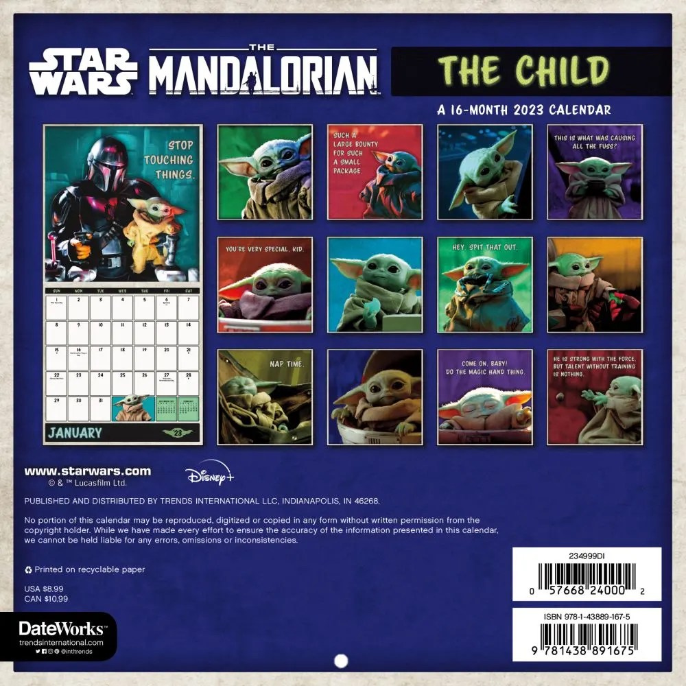 Mandalorian Child SW Excl wPrint 2023 Wall Calendar