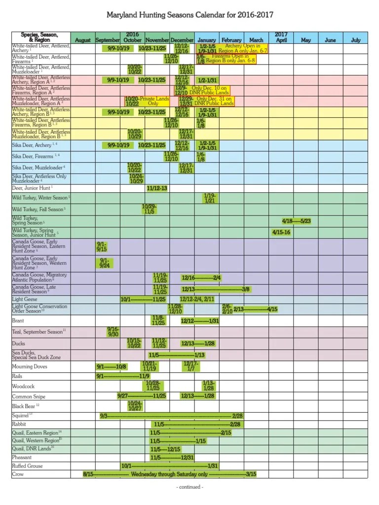 Maryland Hunting Season Calendar2 Deep Creek Times